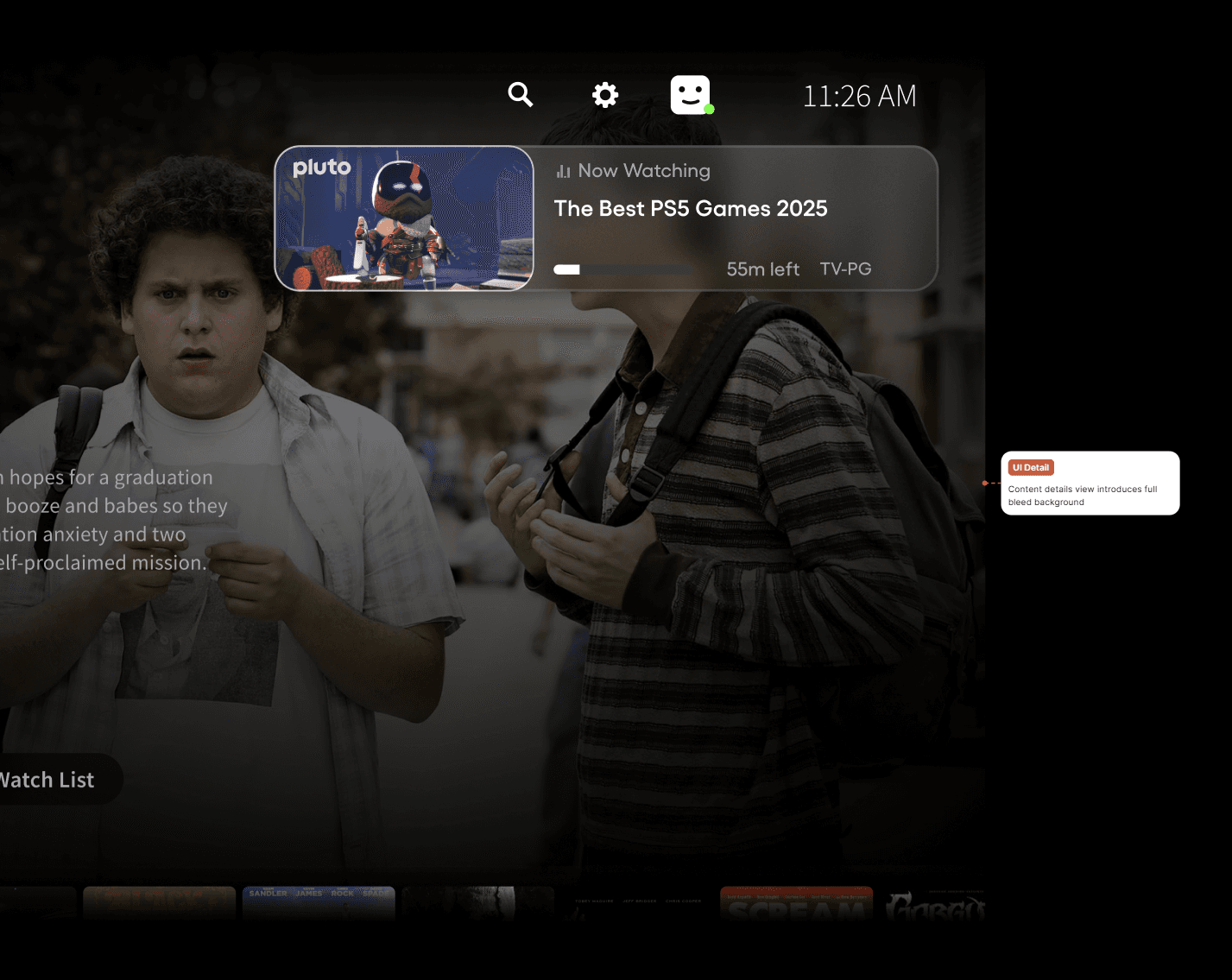 The result was a tailored UI framework that balanced the strengths of both ecosystems: the scalability of Pluto TV’s design system and the immersive, console-native feel of the PS5 interface.